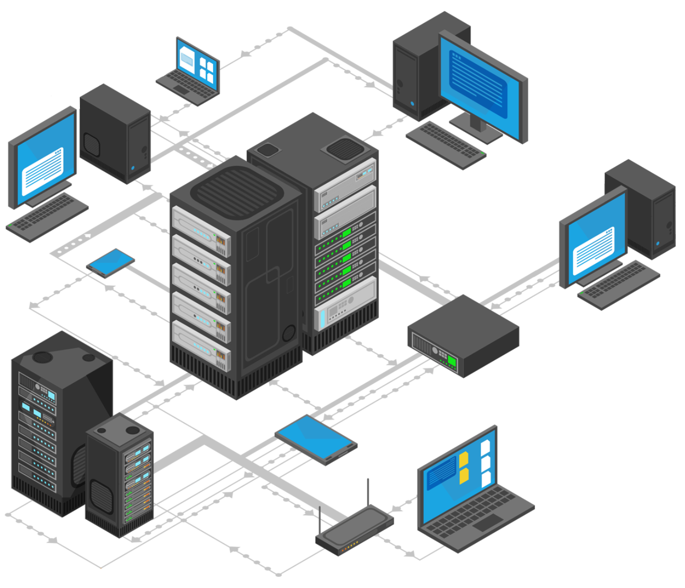 Progettiamo e implementiamo reti informatiche ad alte prestazioni, configurando router, firewall, switch, access point e tutti gli apparati necessari per garantire un’interconnessione sicura ed efficiente dei dispositivi aziendali.